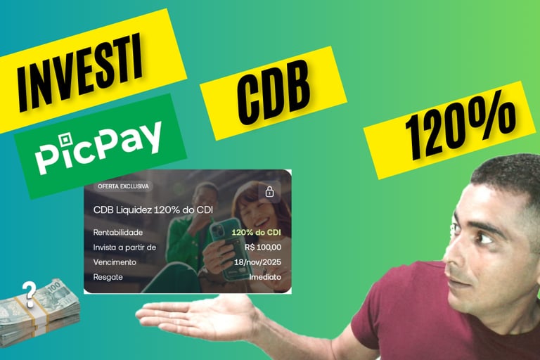 Opção IMPERDÍVEL no PicPay: CDB Pagando 120% do CDI! 🤑 Quer turbinar sua grana de forma segura e com um rendimento INCRÍVEL? 🤔 Descubra neste vídeo como aproveitar o CDB que está pagando 120% do CDI no PicPay! 🚀 Uma oportunidade que pode fazer seu dinheiro crescer muito mais do que a poupança tradicional. 💰 ✅ Neste vídeo você vai aprender: O que é CDB e como ele funciona no PicPay. Por que 120% do CDI é uma taxa EXCELENTE. O passo a passo para investir nesse CDB pelo aplicativo. Quais são os riscos e as vantagens dessa aplicação. Simulações de quanto seu dinheiro pode render! Não perca essa chance de fazer seu dinheiro trabalhar para você! Assista agora e comece a investir com alta rentabilidade no PicPay. 😉 🔔 ATIVE AS NOTIFICAÇÕES para não perder nenhum vídeo sobre investimentos e finanças! 👍 DEIXE SEU LIKE se gostou da dica! 💬 COMENTE suas dúvidas e compartilhe sua experiência!